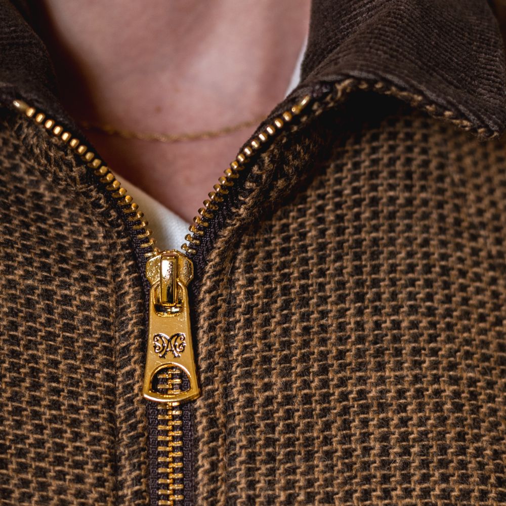 The poncho is finished with a delicate gold metal zipper that, in addition to closing the piece, bears the Malacara signature.