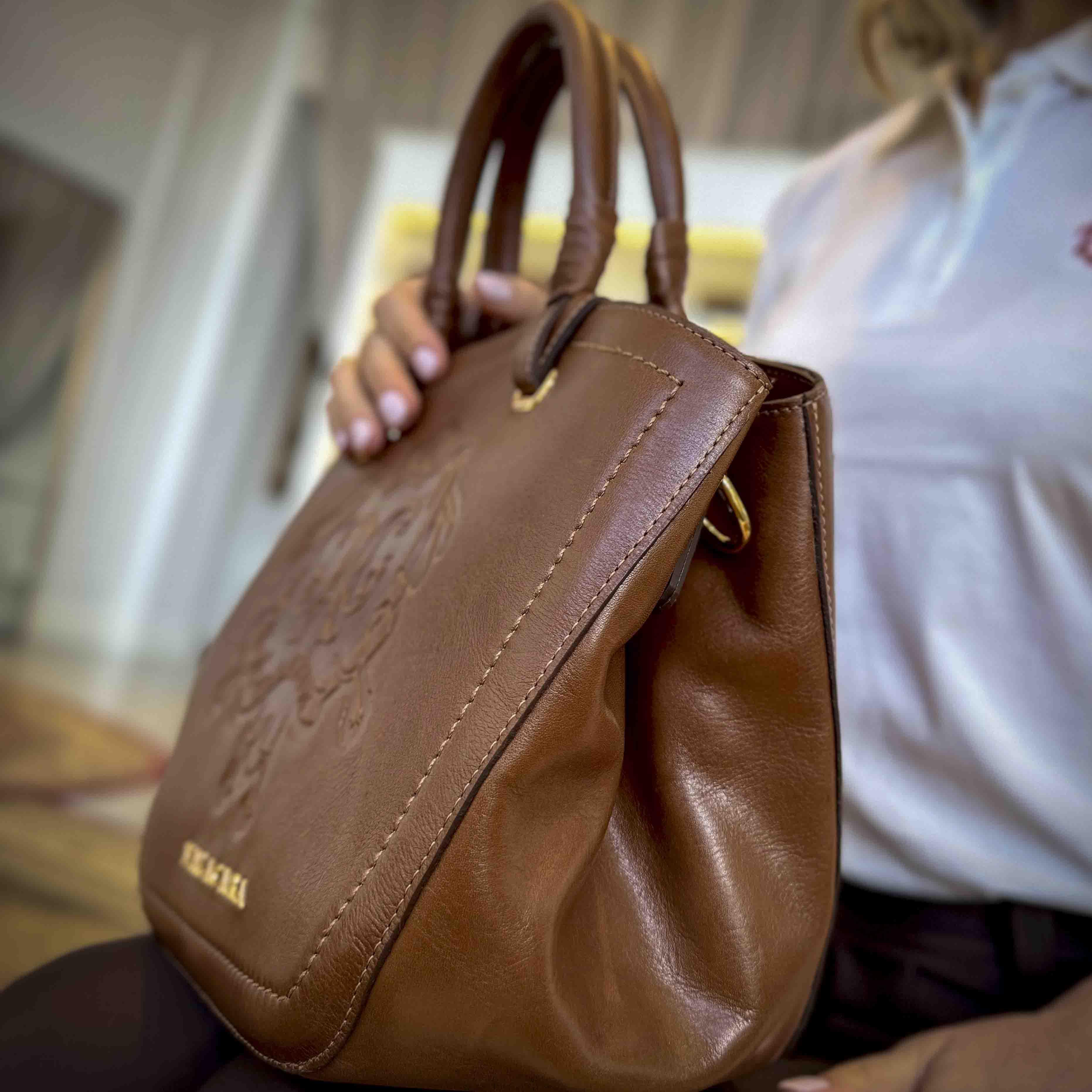 The Autunno Bag is the perfect expression of elegance and identity. Made from fine leather, its highlight is the print of the Malacara brand coat of arms on the body of the bag, a symbol of tradition and exclusivity.