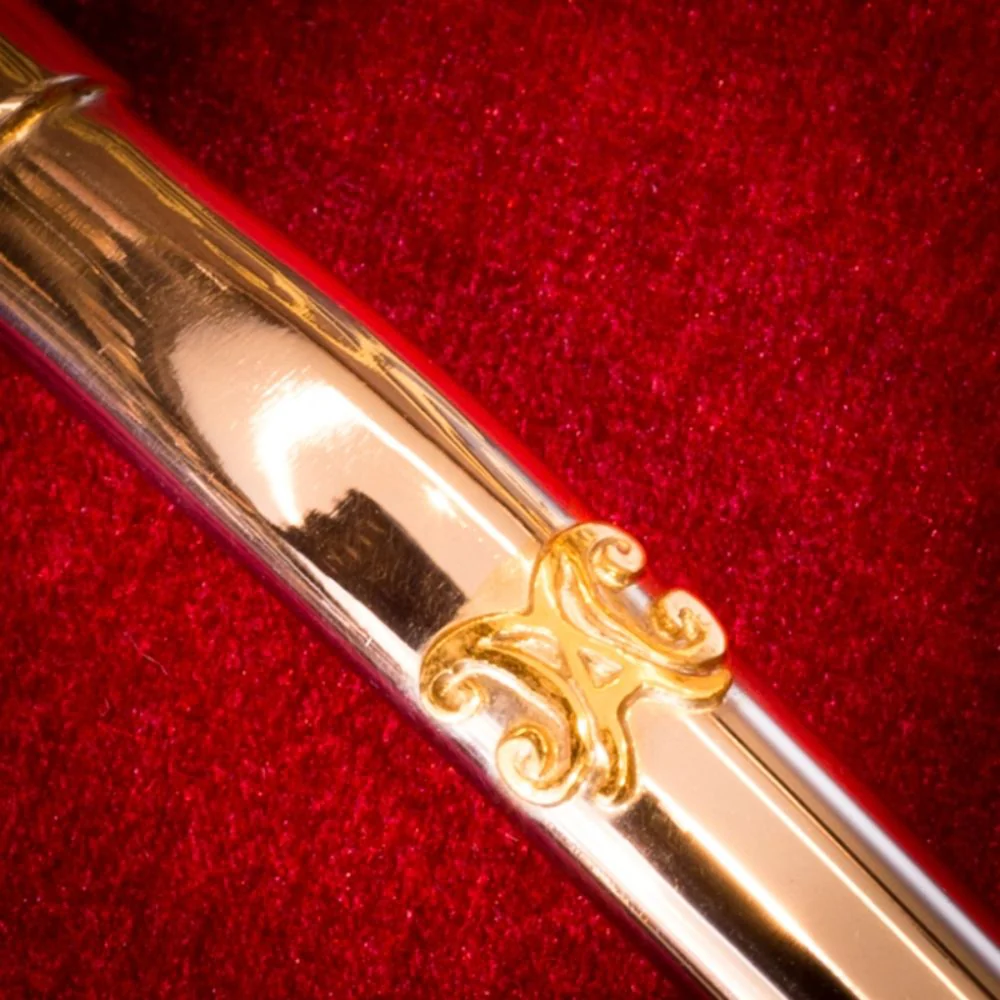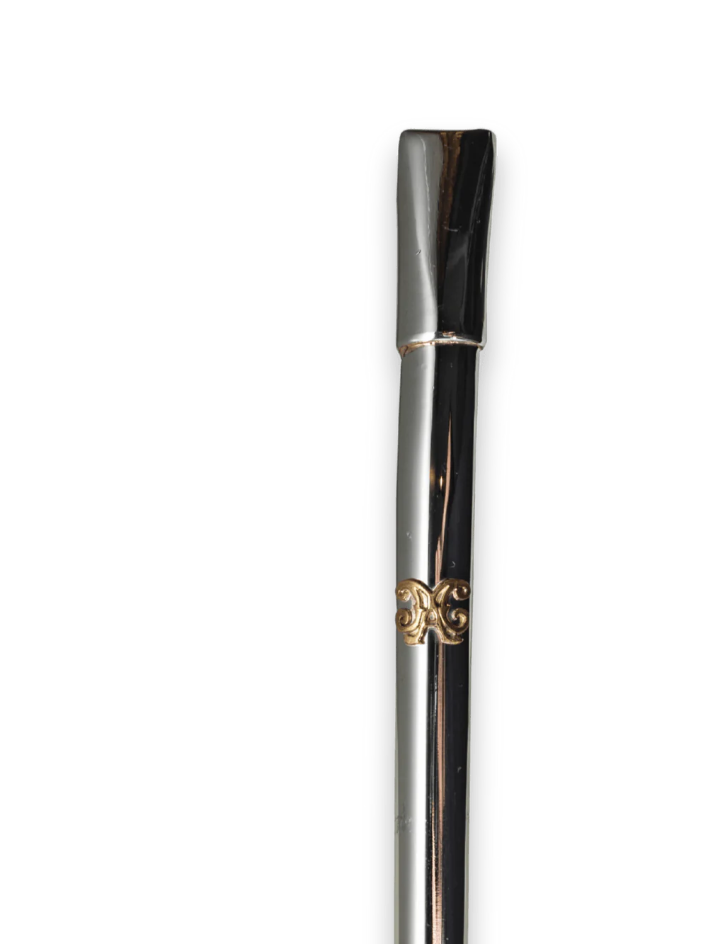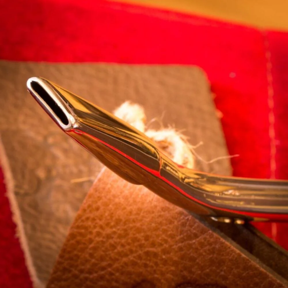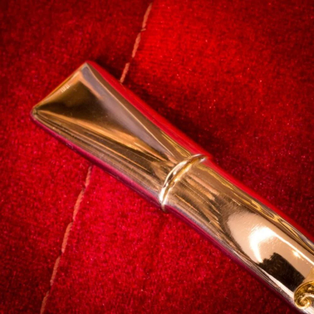 Measuring 24cm in length and made of stainless steel, the piece features the brand's signature in high relief in gold thread.