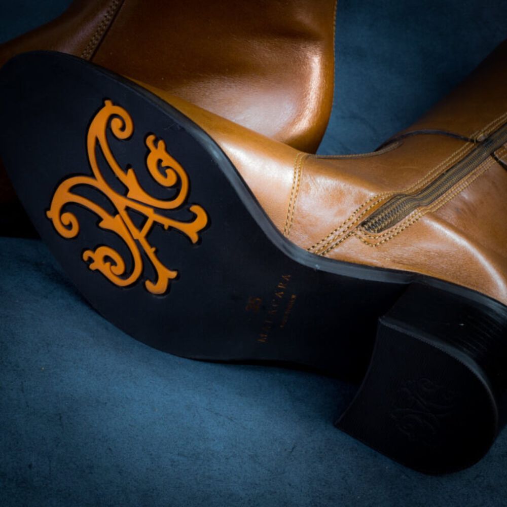 A Malacara mantém as botas de cano longo com um design que resgata suas origens, sem perder a sofisticação dos tempos modernos. As costuras, meticulosamente planejadas, e a matéria-prima de alta procedência garantem qualidade e durabilidade. Os metais, que remetem à identidade da marca, adicionam um toque de delicadeza aos pares e todo esse processo é realizado artesanalmente, reforçando assim a conexão com a tradição que a marca preserva com tanto esmero.
