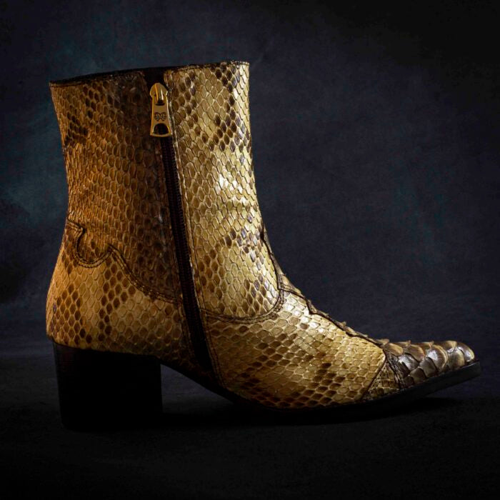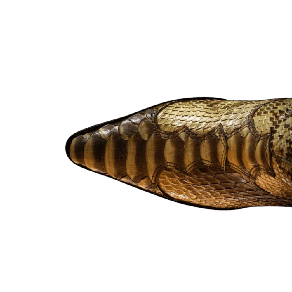The striking textures of python leather are at the heart of the collection, with its natural scales revealing a wild and unparalleled beauty. Each pair is unique, bringing a distinct personality, defined by the organic nuances that only python leather can offer.