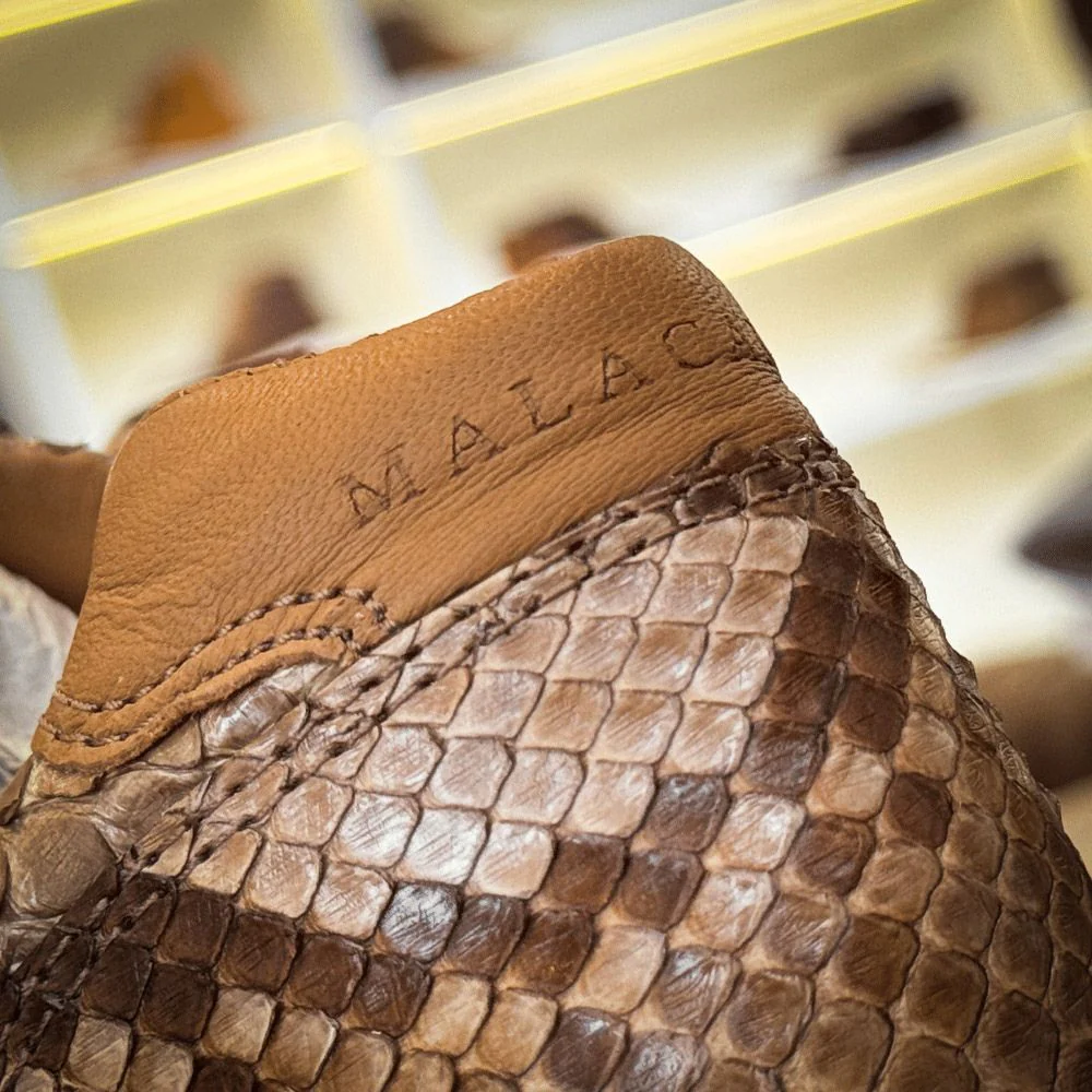 The striking textures of python leather are at the heart of the collection, with its natural scales revealing a wild and unparalleled beauty. Each pair is unique, bringing a distinct personality, defined by the organic nuances that only python leather can offer.