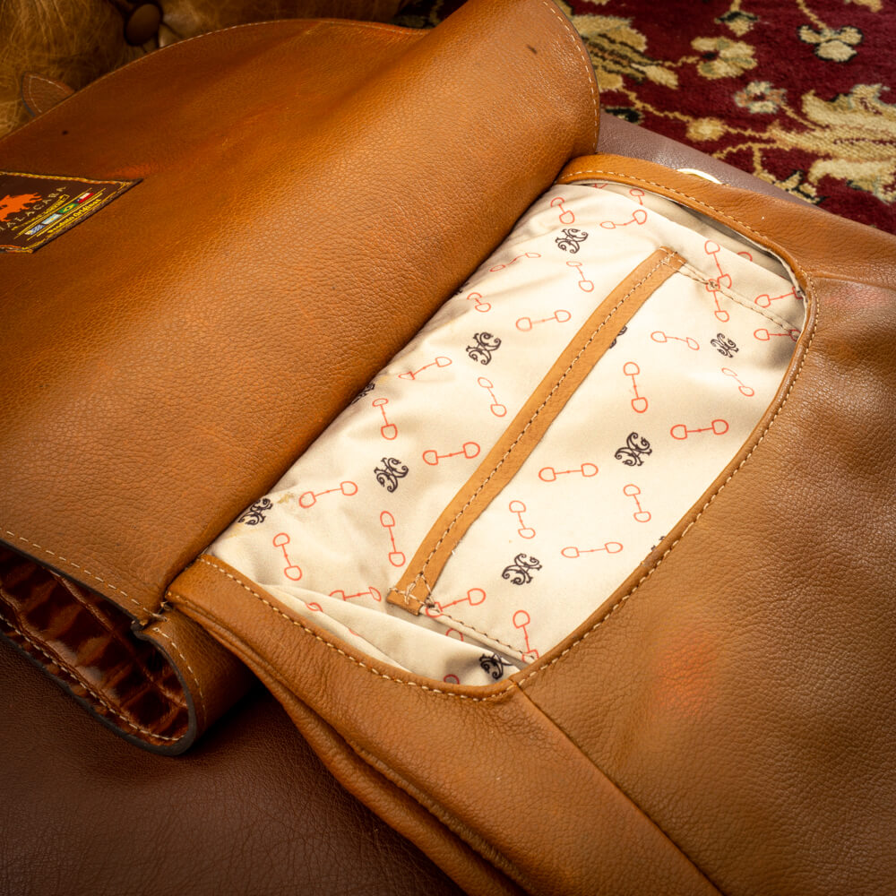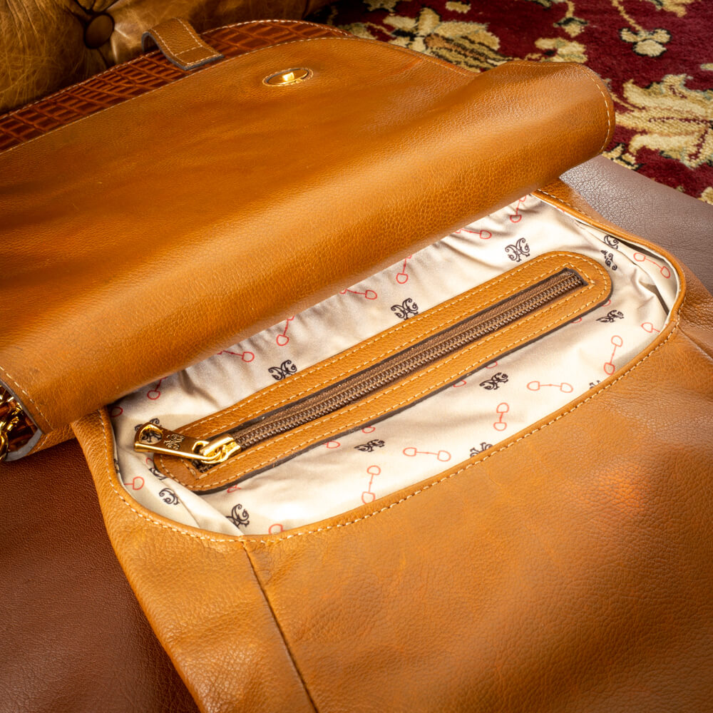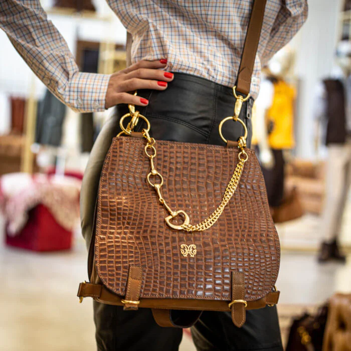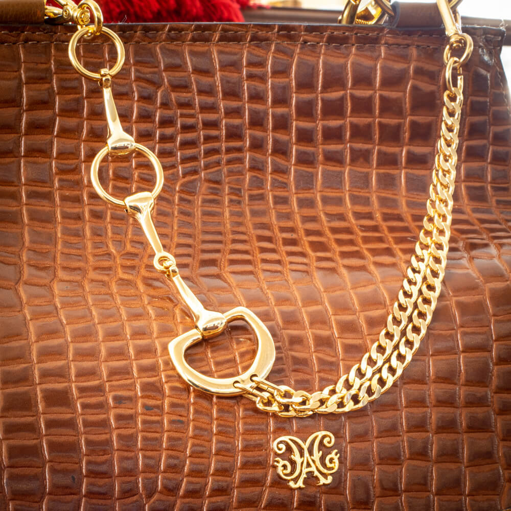 On the front, the stylized gold-colored metal bridle becomes a striking detail, reinforcing the identity and style of the piece. Made entirely of fine leather, the Carijo Bag combines durability and sophistication. The interior has a satin lining, ensuring an impeccable finish.