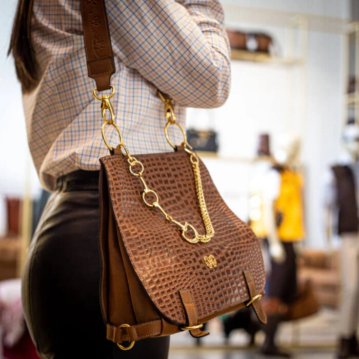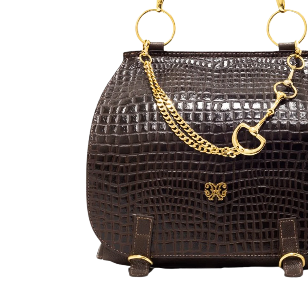 The Carijo Bag is a sophisticated piece that combines elegance and personality. Its design stands out due to its gold-colored metals, which add a touch of refinement to the model. The bag's greatest charm lies in the Crocodile print on the front cover, giving the accessory texture and exclusivity.