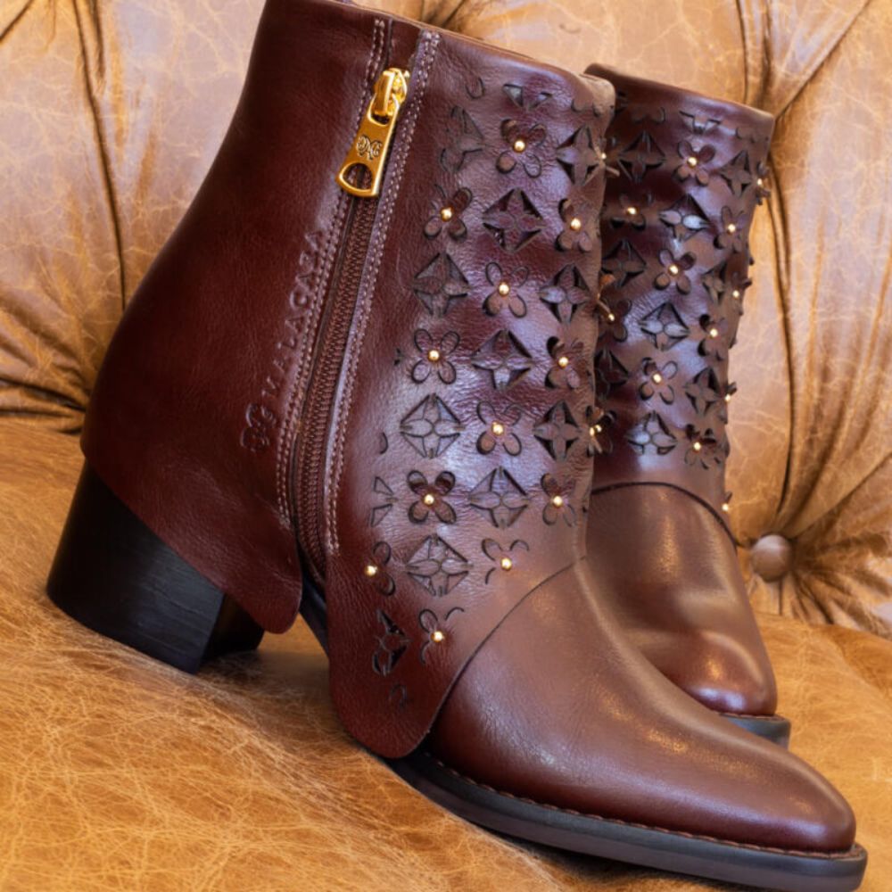 Malacara maintains its short-shaft boots with a design that recalls their origins, without losing the sophistication of modern times. The meticulously planned seams and the high-quality raw materials guarantee quality and durability. The metals, which refer to the brand's identity, add a touch of delicacy to the pairs and this entire process is carried out by hand, thus reinforcing the connection with the tradition that the brand preserves with such care.