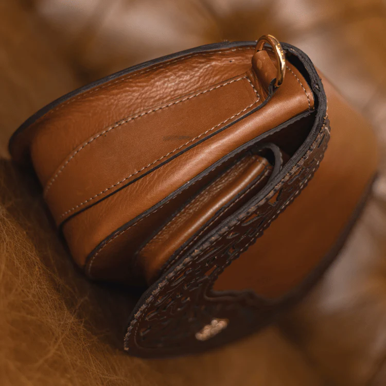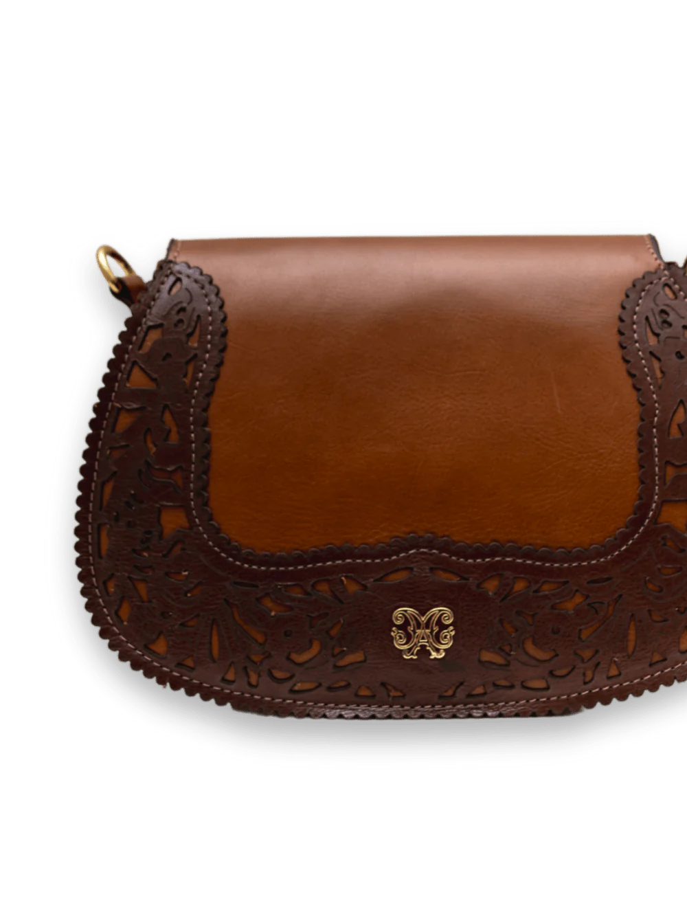 The Florzita Bag is the definition of delicacy and sophistication. Its great charm lies in its front body in worked leather, with laser-cut details that give it a unique and refined look. The special finish extends to the handle, where the same laser work adds even more exclusivity to the design.