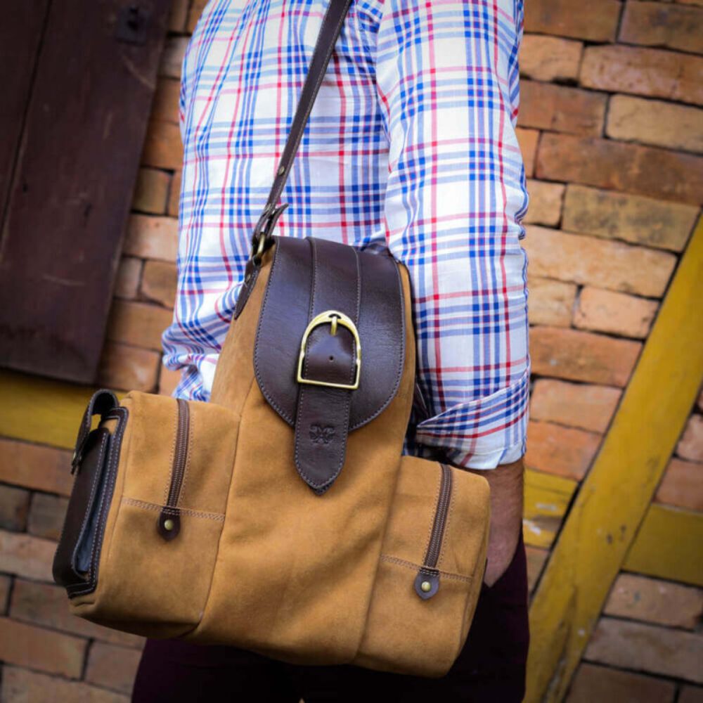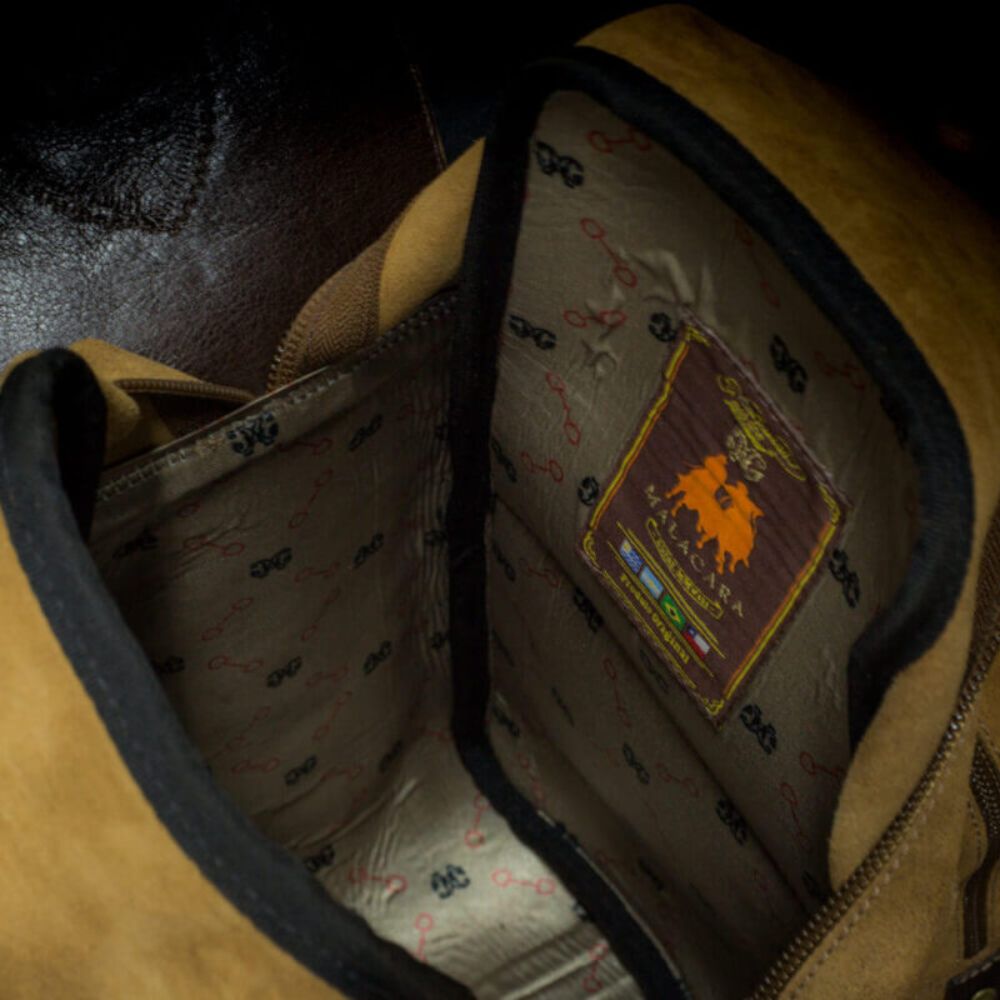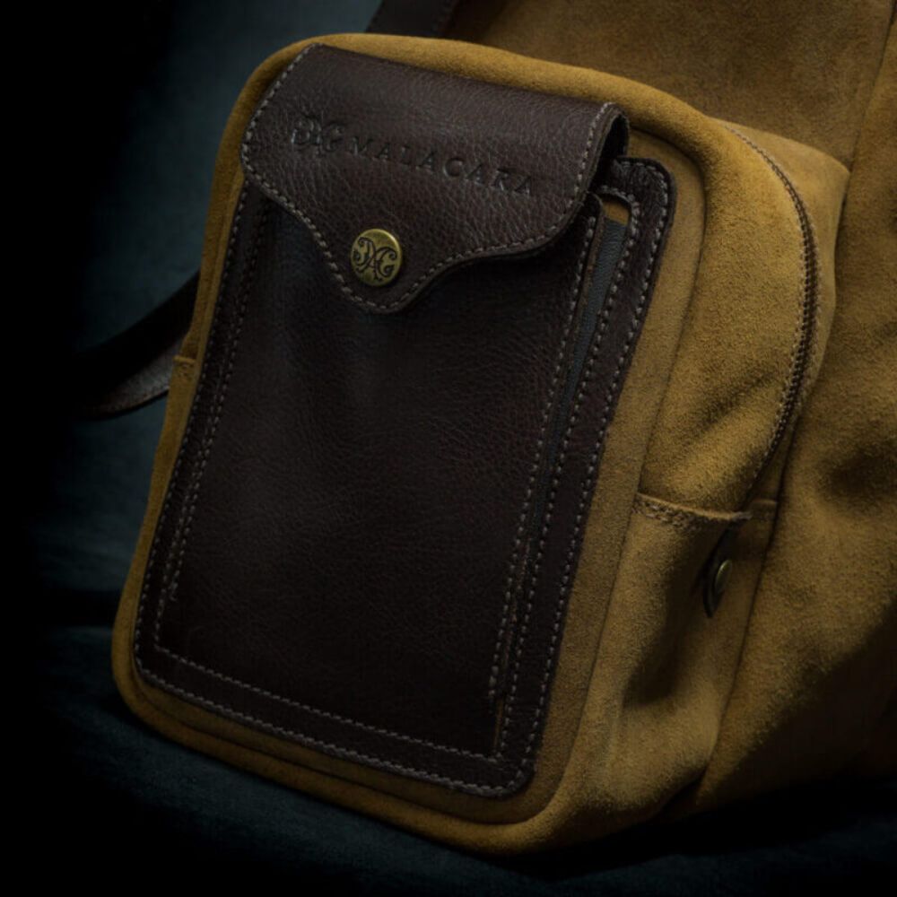 The personalized stirrup-shaped buckle complements the design, bringing a special charm. The front metal with the Malacara logo, in gold metals, reinforces the brand's identity in a refined way. Its malleable leather structure makes it perfect for carrying mate items, bottles of wine or sparkling wine, combining functionality and sophistication.