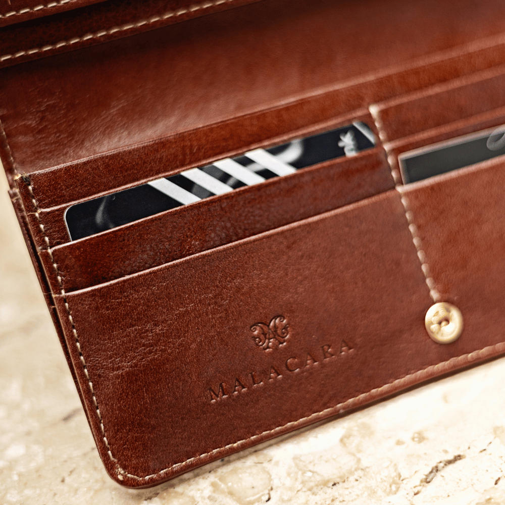The Jataí Women's Wallet by Malacara is the embodiment of subtle refinement — ideal for those who appreciate understated elegance. Its slim, elongated shape offers a visually light and sophisticated charm, perfect to carry by hand or inside a handbag. Crafted from genuine leather and available in classic, earthy tones, it reflects the brand’s timeless essence with precise finishing and a soft, luxurious touch.