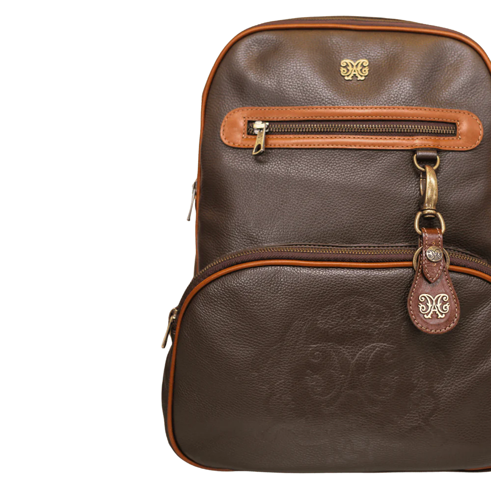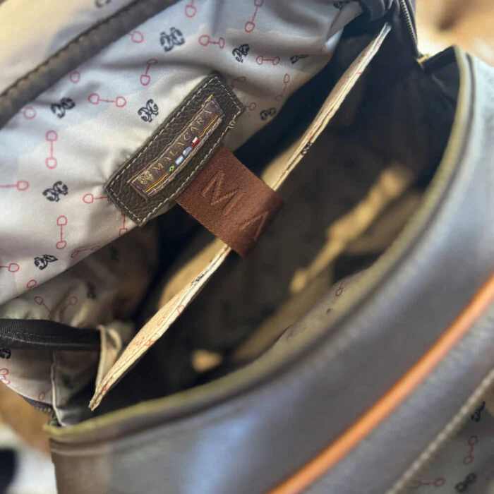 The metal front with the Malacara logo is a detail that adds a subtle and striking charm, while the leather straps and handles with buckles provide a special touch, combining style and practicality. With antique silver-plated metals, the backpack has a unisex appeal, suitable for anyone who values quality and design.