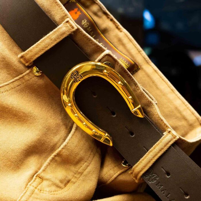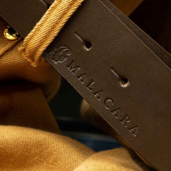 The highlight is the exclusive personalized buckle, carefully designed to reflect the Malacara spirit. Plated in gold, it adds a touch of refinement, elevating the accessory to a new level of style.