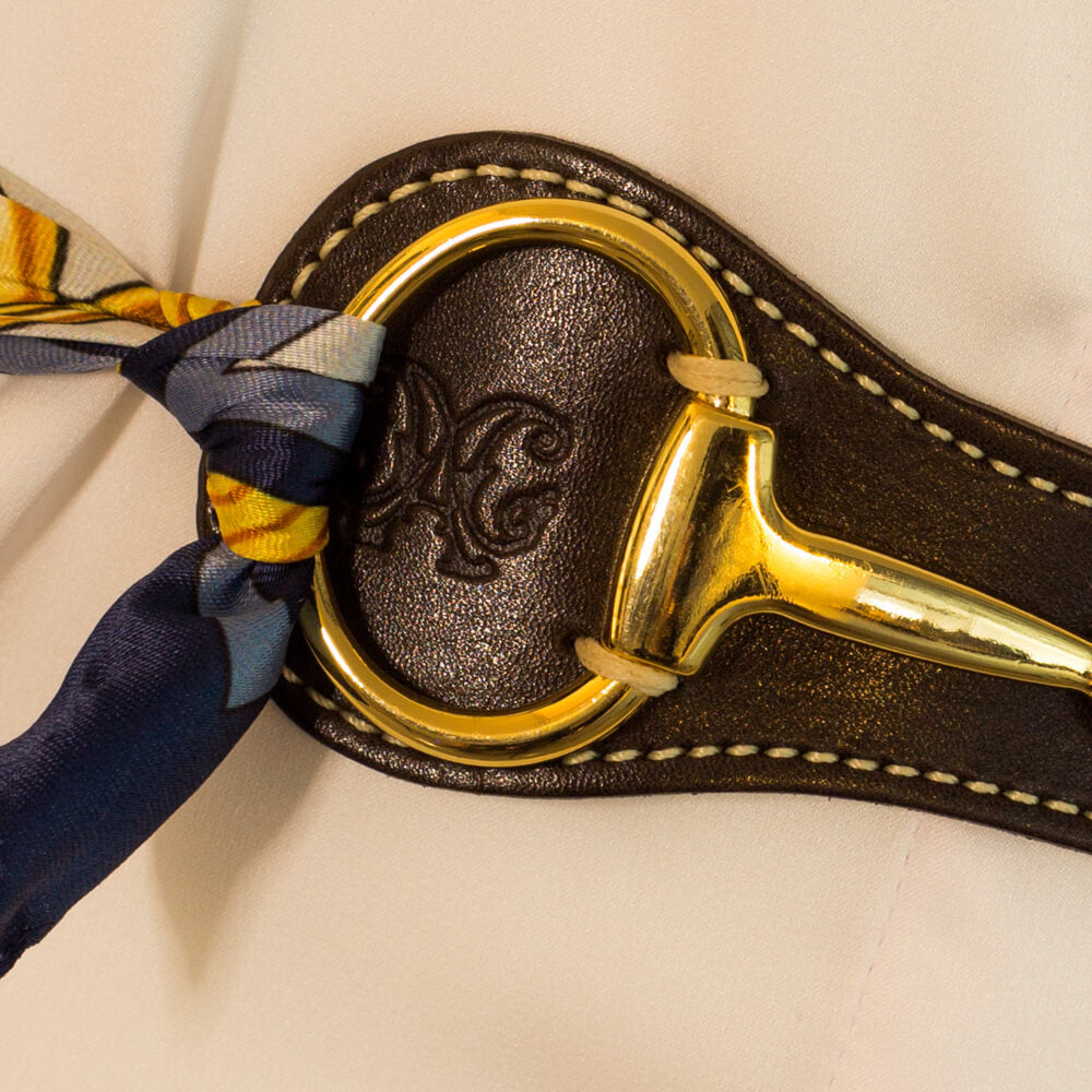 The highlight is the exclusive personalized buckle, carefully designed to reflect the Malacara spirit. Plated in gold, it adds a touch of refinement, elevating the accessory to a new level of style.