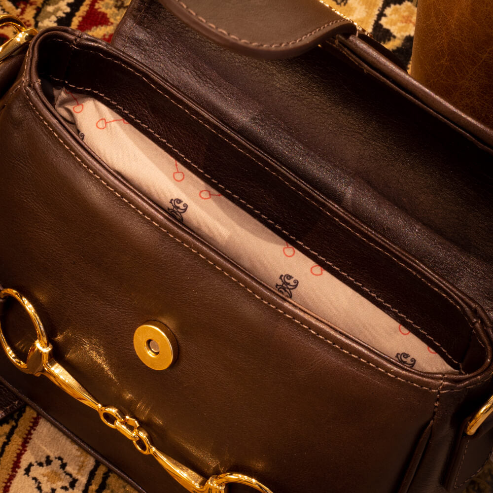 The Purunã Bag is one of the brand's most beloved models, a piece that combines sophistication and authenticity. The highlight is the stylized gold metal bridle on the front of the bag, which is simply stunning and adds a unique touch of elegance.