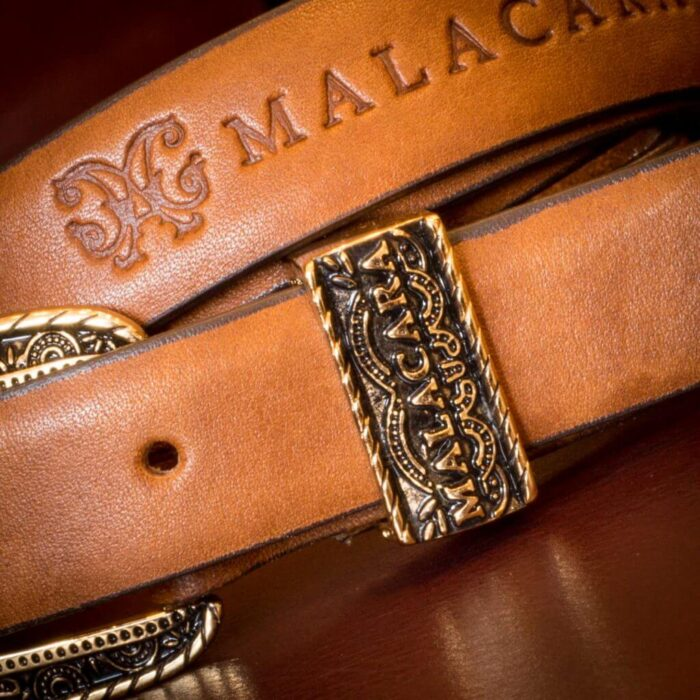 The highlight is the exclusive personalized buckle, carefully designed to reflect the Malacara spirit. Plated in gold, it adds a touch of refinement, elevating the accessory to a new level of style.