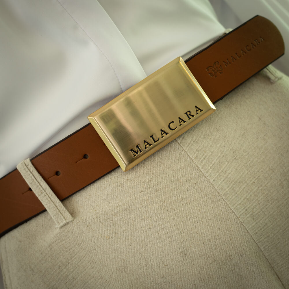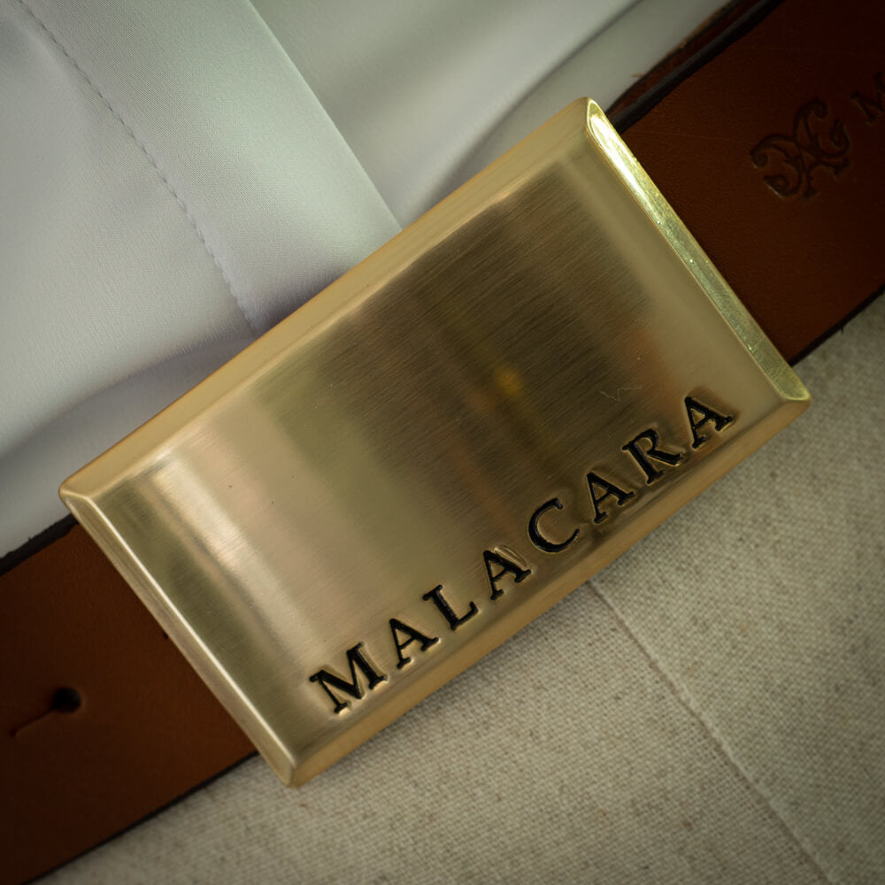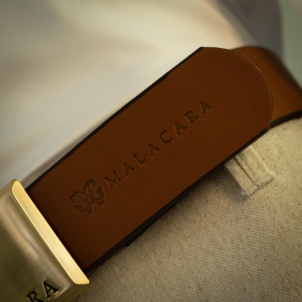 The highlight is the exclusive personalized buckle, carefully designed to reflect the Malacara spirit. Plated in gold, it adds a touch of refinement, elevating the accessory to a new level of style.