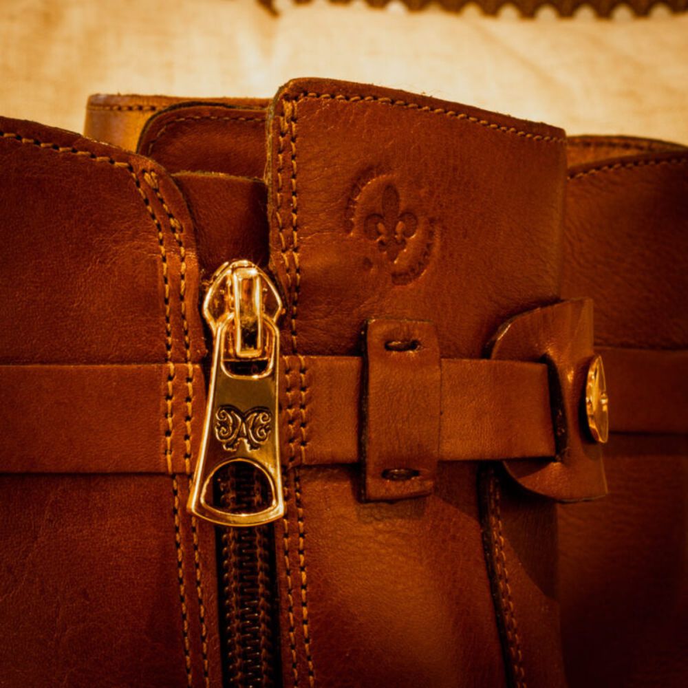 The Tupi Boot, made of genuine leather, is a timeless icon that combines the grandeur of the riding style with the versatility of the short shaft. Ideal for those seeking comfort with country elegance, it has an internal zipper for easy fitting. Its gold metal details, applied to the leather strap at the ankle and heel, add sophistication and a striking touch to the model.